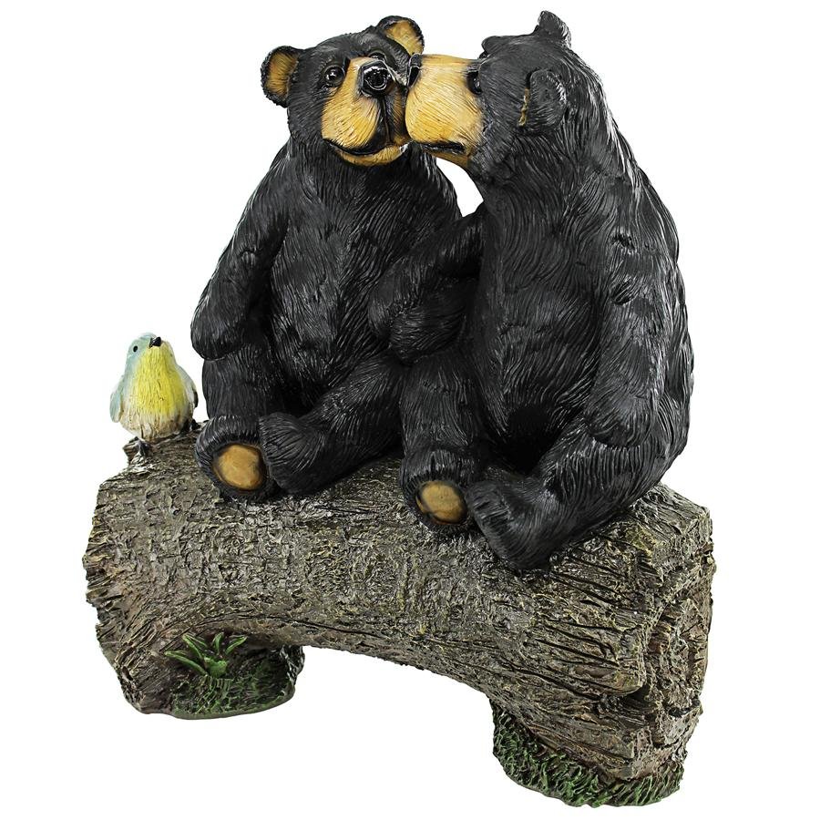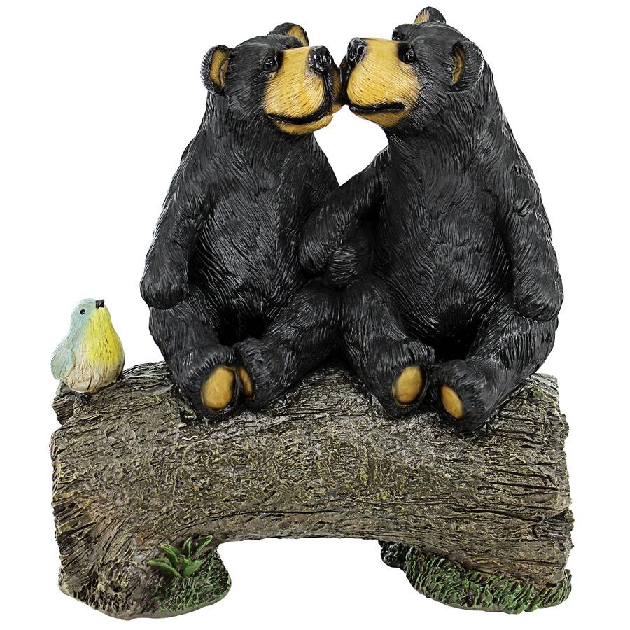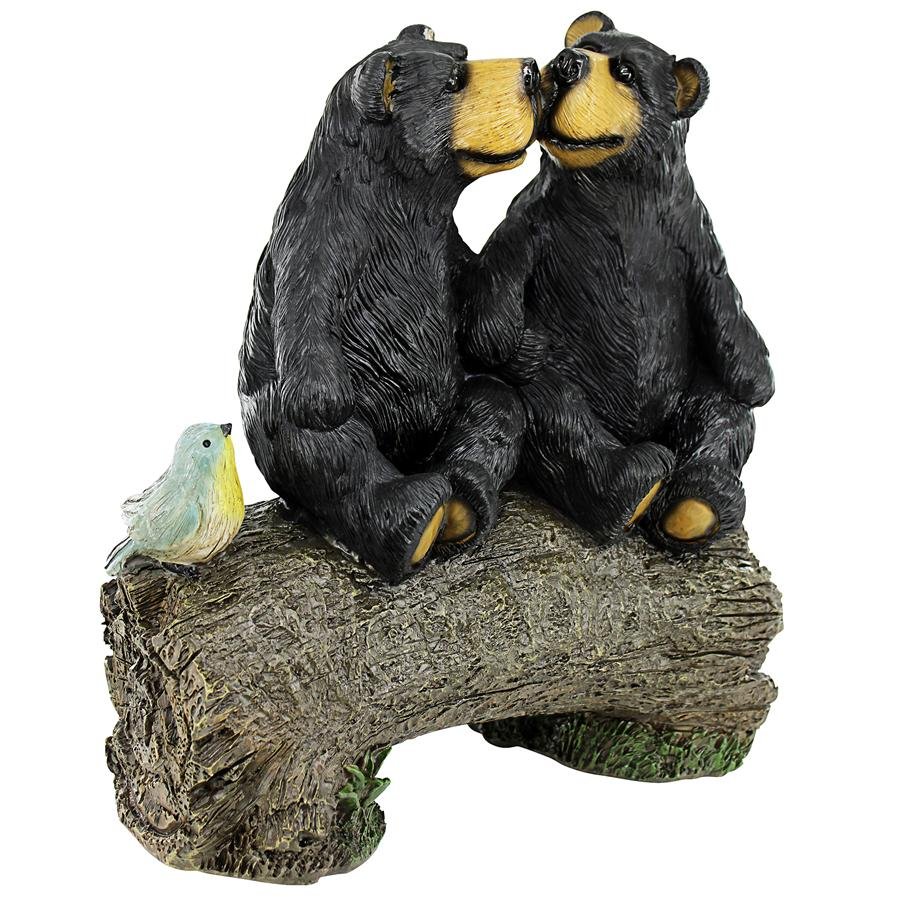 These best bear buddies can bear-ly stand to be apart from each other! So sweet that they're practically em-bear-assing, these black bears have taken a break from the un-bear-able heat of summer to smooch each other atop their favorite wooden log as the bluebird of happiness looks on. Showcased in your garden or in a family den, our black bear statue is a Design Toscano exclusive. This collectible animal statue is cast in quality designer resin and individually hand painted in a natural palette as a decor piece that feels like a big furry bear hug! 12"Wx6"Dx13"H. 5 lbs.